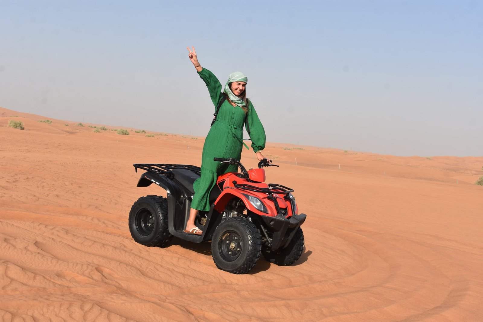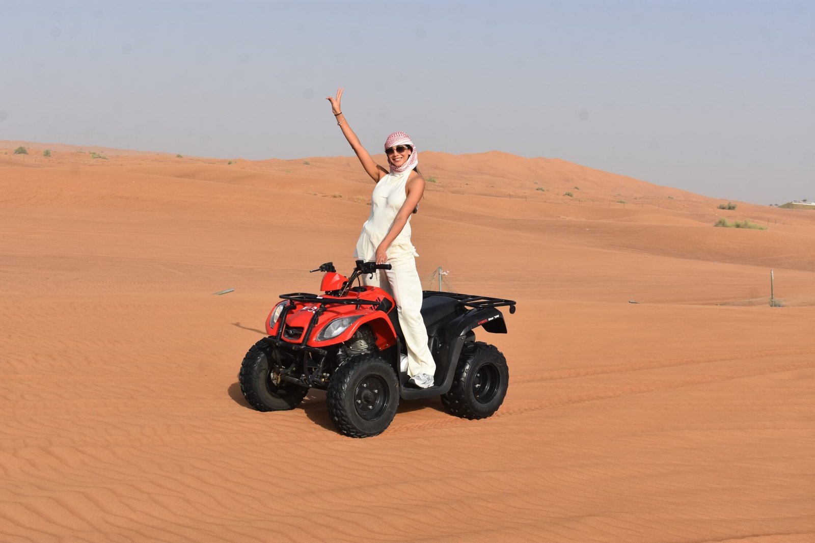 Enjoy a professionally guided double seat quad bike experience in Dubai with premium facilities, desert hospitality, and non-stop adventure